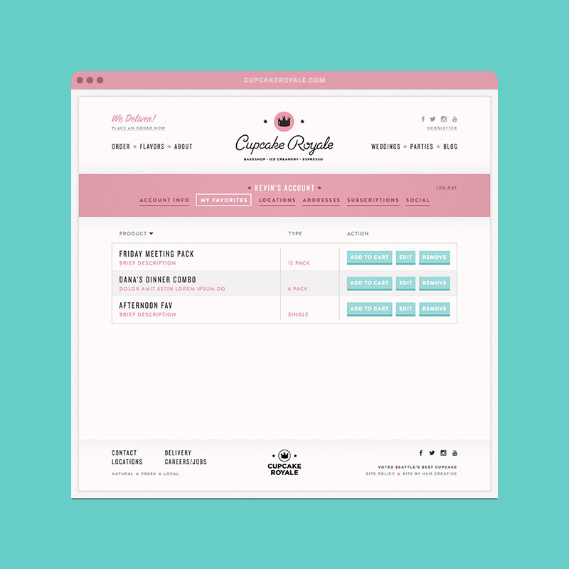Cupcake Royale was the first cupcake bakery in the US outside of New York. After nine years of business, they’d developed a strong local following, but faced a changing cupcake industry. Hum developed a strategy and rebrand that polished Cupcake Royale’s aesthetic across their marketing, store interiors, and web presence, while staying true to the brand their customers loved. Hum designed and built a modern website that opened Cupcake Royale to local and national e-commerce, and elevated their merch line, which was featured in multiple gift guides and selected as one of Oprah’s favorite things.