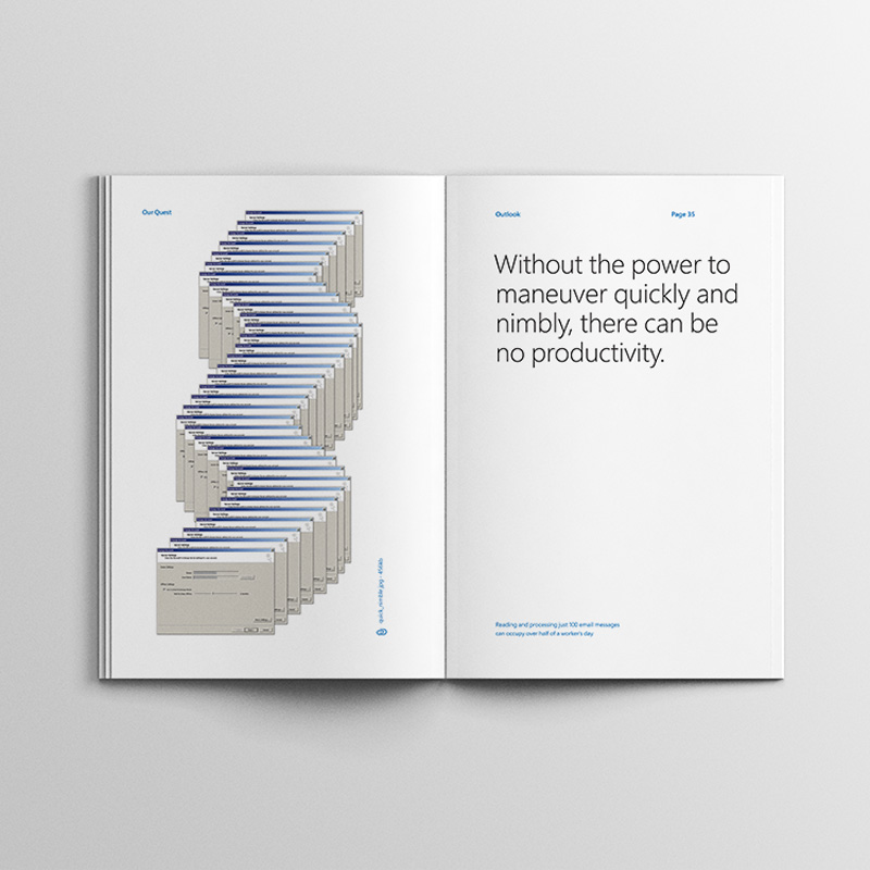 Microsoft empowers people of action to do more. By moving beyond email, Outlook is a tool that allows users to rule their world. Microsoft asked Hum to conceptualize and design a brand book that would reposition Outlook, bring this ethos to life, and provide guidelines for internal team members.