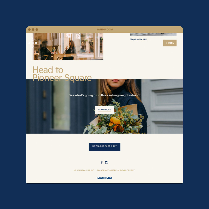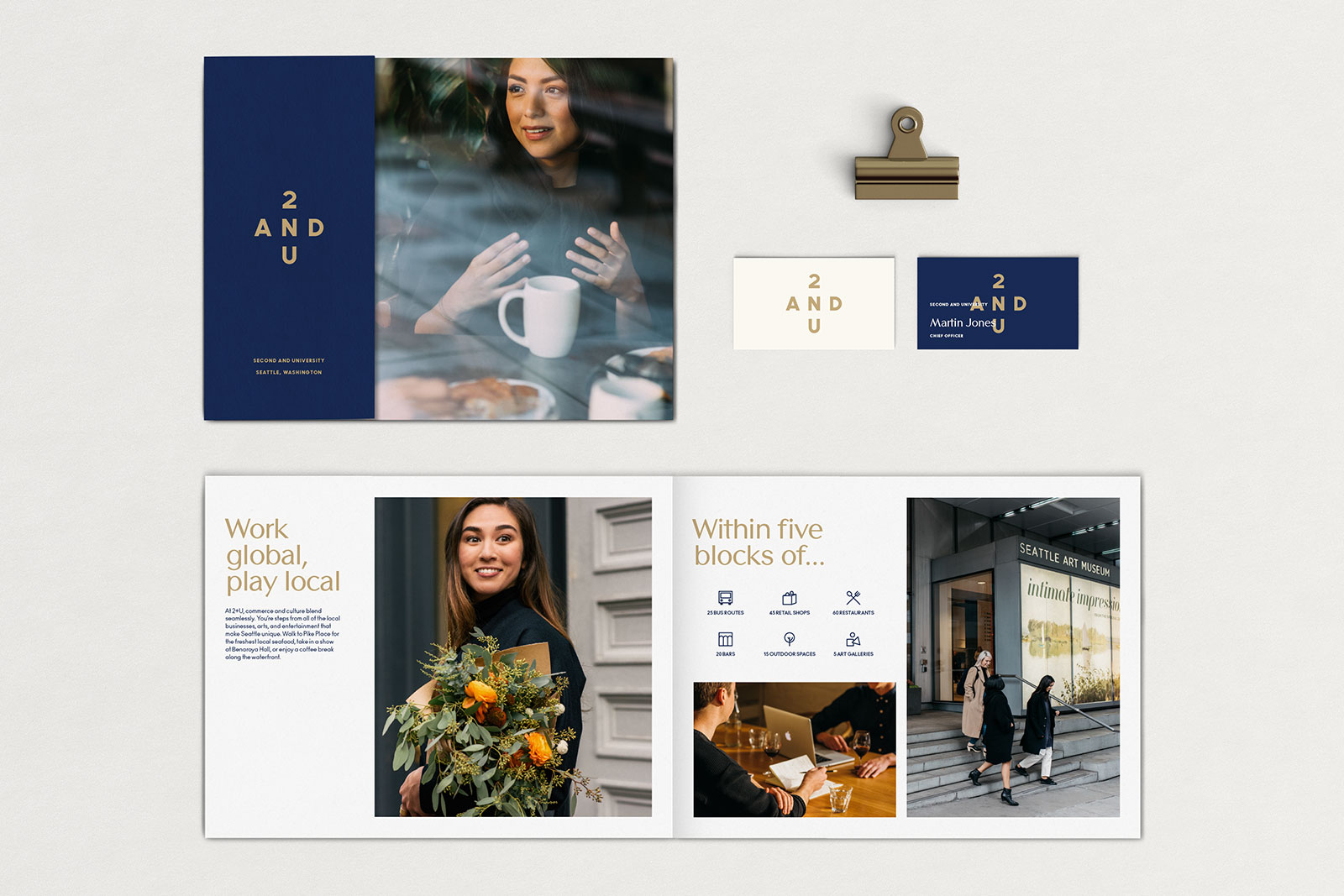 Skanska is a leading global construction and development company with a visionary team in Seattle. 2+U, Skanska’s new downtown-Seattle commercial development, prioritizes thoughtful design, high-tech amenities, and community building. Skanska engaged Hum to develop a 2+U brand that is easy for senior staff and brokers to pitch: refined and immediately informative, all while engaging young professionals.